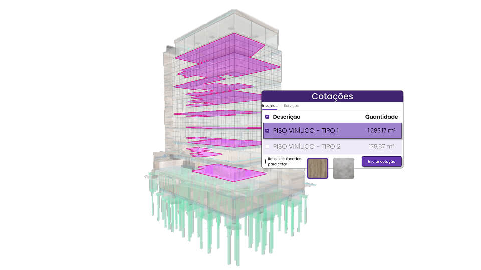 A cotação se dá a partir do modelo das disciplinas de projeto BIM