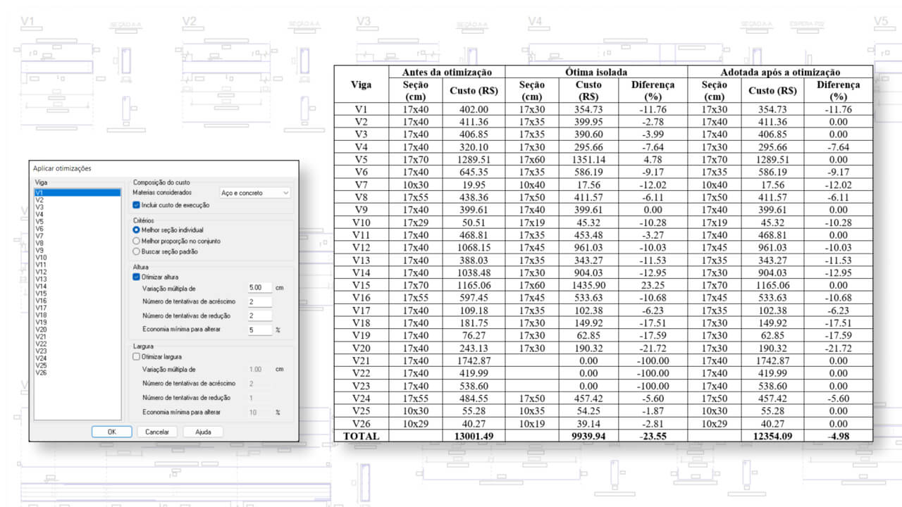 O programa conta com um algoritmo exclusivo que encontra a seção transversal mais econômica para cada viga ou pilar da estrutura, com base em critérios predefinidos sobre a seção transversal original. Essa otimização pode ser aplicada para cada elemento ou para grupos de vigas e pilares os quais se deseja a mesma seção. Com resultados expressivos em termos de economia, os projetos se tornam mais eficientes, resultando em mais produtividade para o projetista.