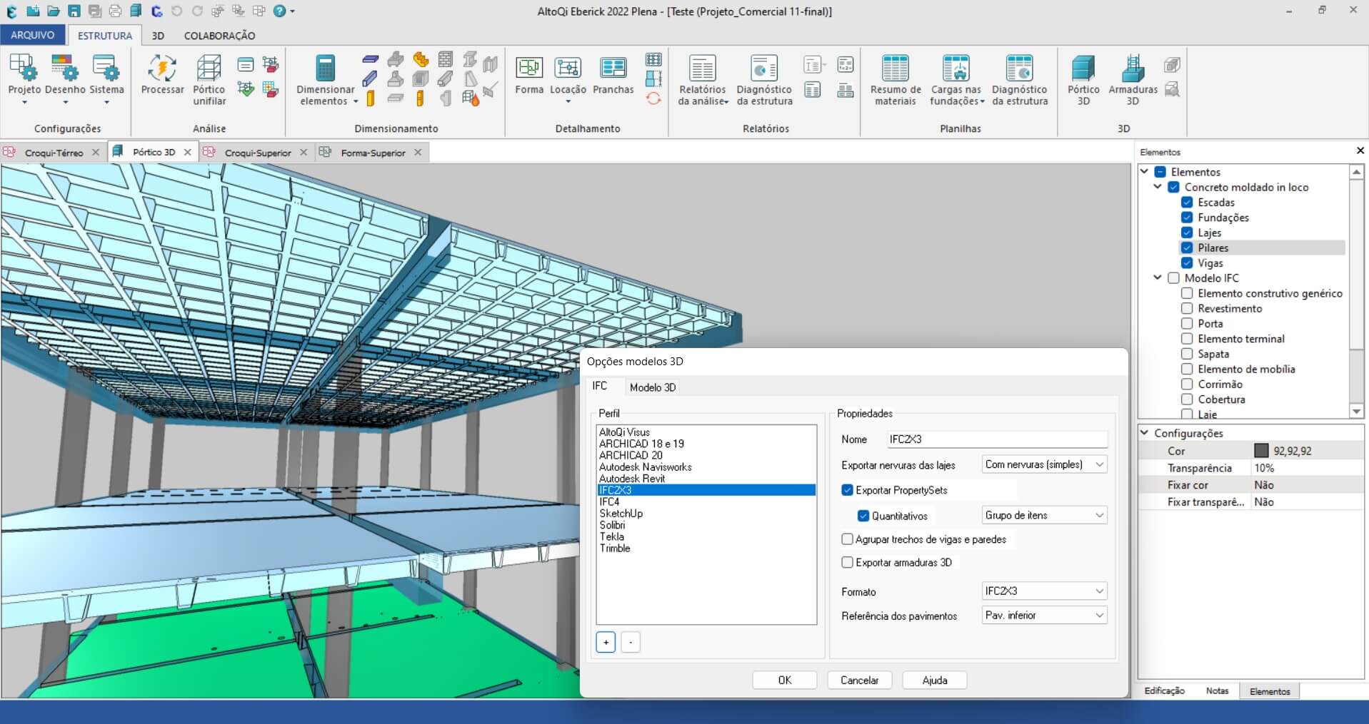 Agora, o Eberick permite que os IFCs de lajes sejam exportados levando em consideração as edições realizadas no detalhamento do Editor. O recurso foi desenvolvido para as lajes, cujas diferenças de detalhamento costumam ser mais importantes, agregando precisão na quantificação de materiais do seu projeto.