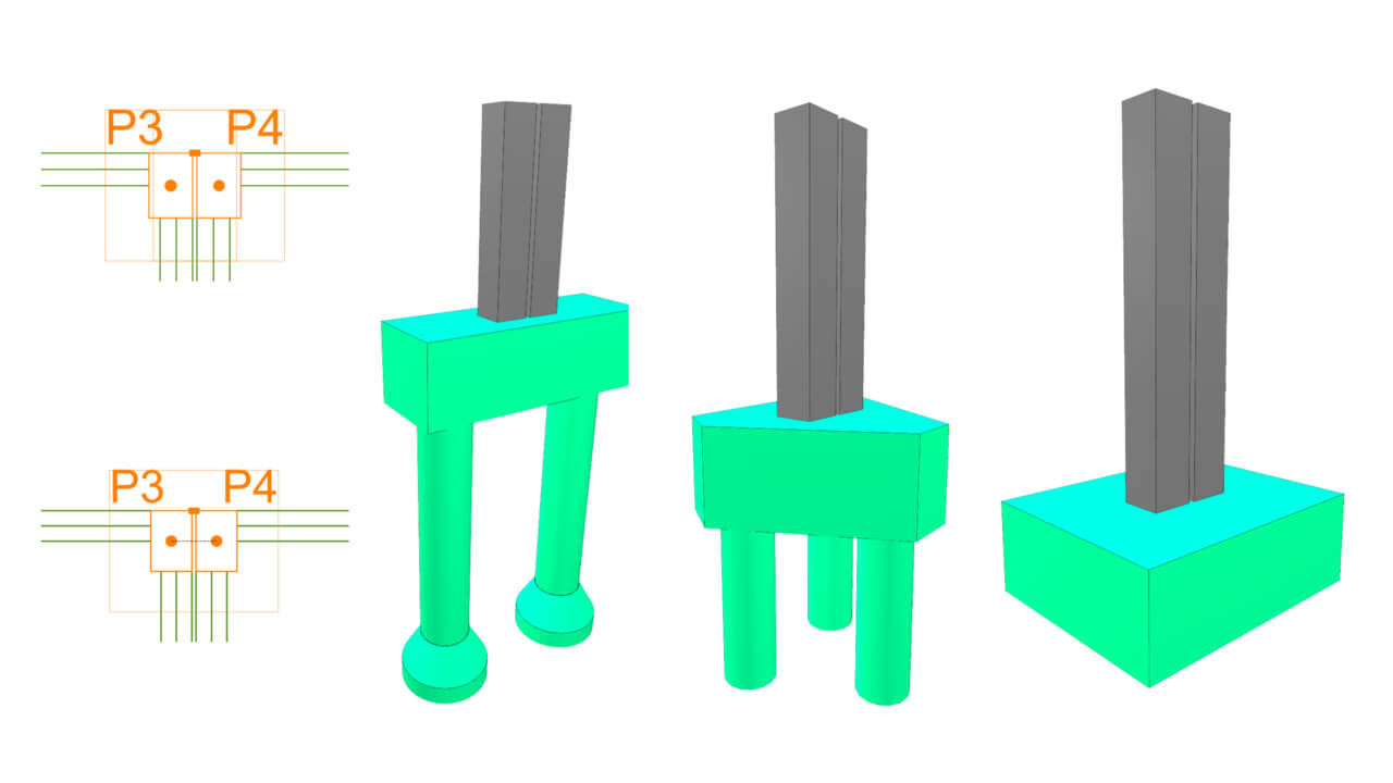 No software é possível associar as fundações de pilares convencionais que estejam próximos, como no caso de juntas de dilatação. Diante de tais situações, é possível agrupar os pilares em uma única fundação, que pode ser bloco, sapata ou tubulão, sendo que o programa fará todo o cálculo e o detalhamento da fundação, considerando as excentricidades nas fundações decorrentes das cargas e momentos diferenciais.