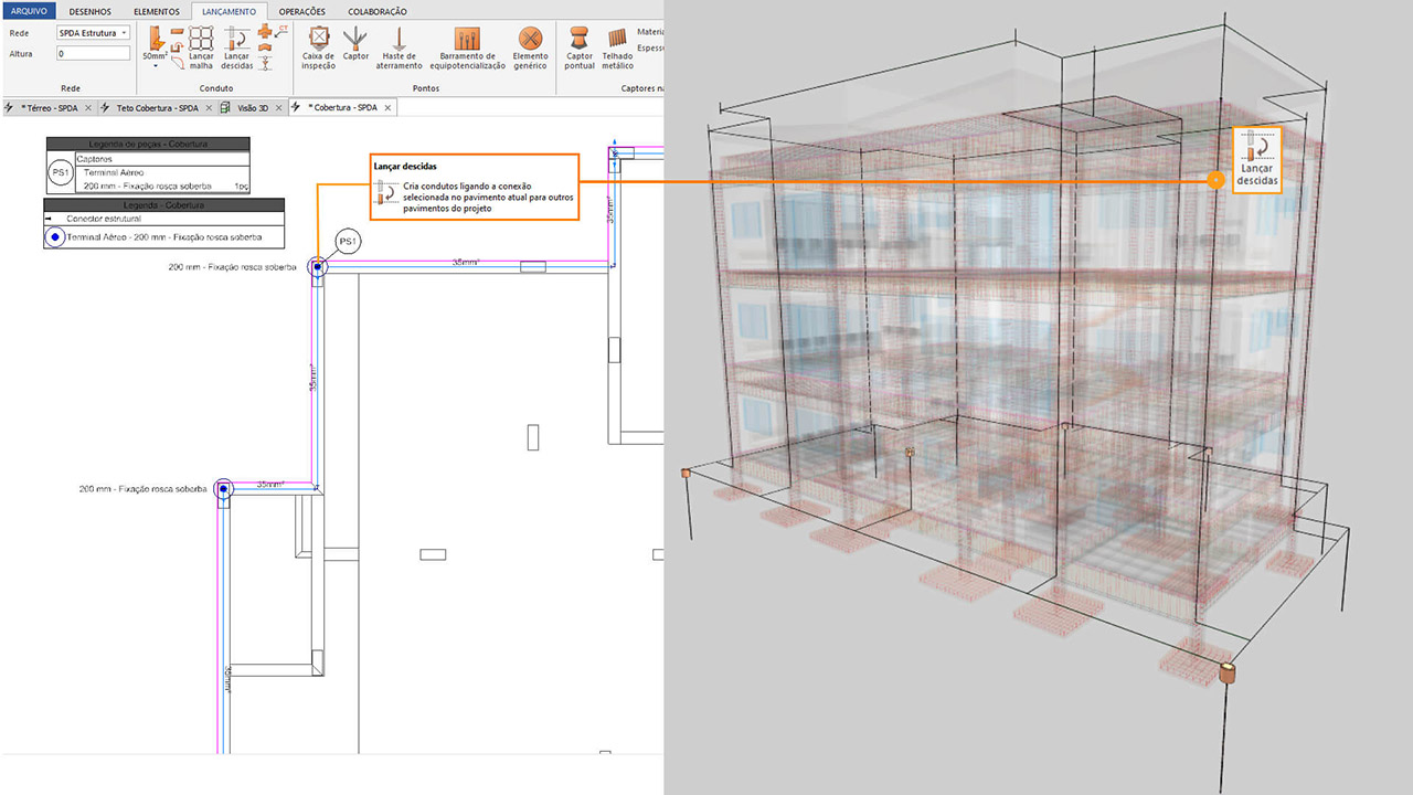 Com o Builder você pode lançar as descidas de maneira manual ou automática. No lançamento automático, o software lança as descidas entre pavimentos selecionados, criando conexões entre elas e gerando uma prumada entre os elementos. Além disso, o software contabiliza e apresenta as descidas no memorial de cálculo do seu projeto. Assim, você passa menos tempo efetuando o lançamento e aumenta a produtividade na execução do projeto e na conferência dos resultados.
